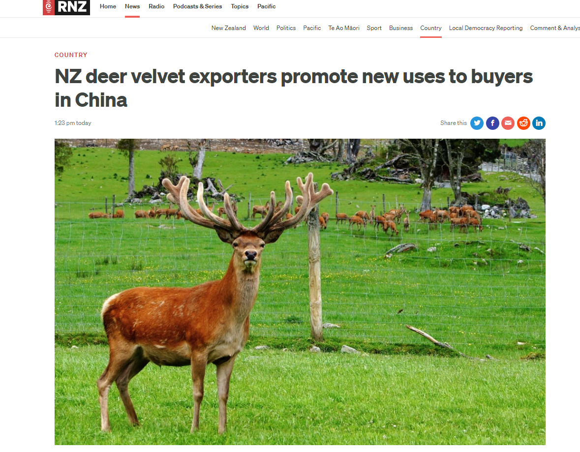 新西兰鹿茸出口商将在华销售重点从传统医药买家转向零售食品服务店和保健食品公司。(图/RNZ网站截图)