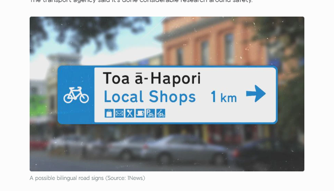 1News29日报道,Waka Kotahi的帕蒂纳(Kane Patena)说:“毛利语标志的应用反映了新西兰的部分历史,我们的文化和语言。”
