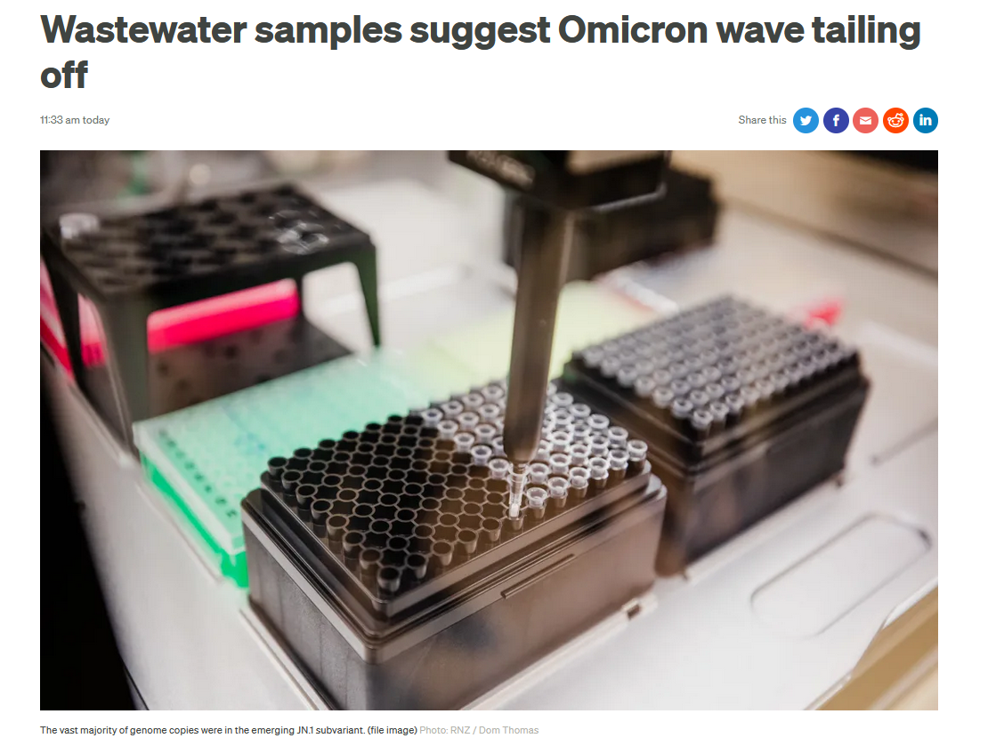 废水样本显示奥密克戎毒株正逐渐消失。(图/RNZ网站截图)
