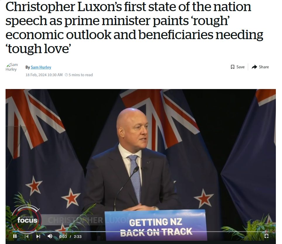 他表示,过去的几年对太多新西兰人都很艰难,全球疫情、海外冲突和自然灾害……“我们已经从挑战转向危机”。