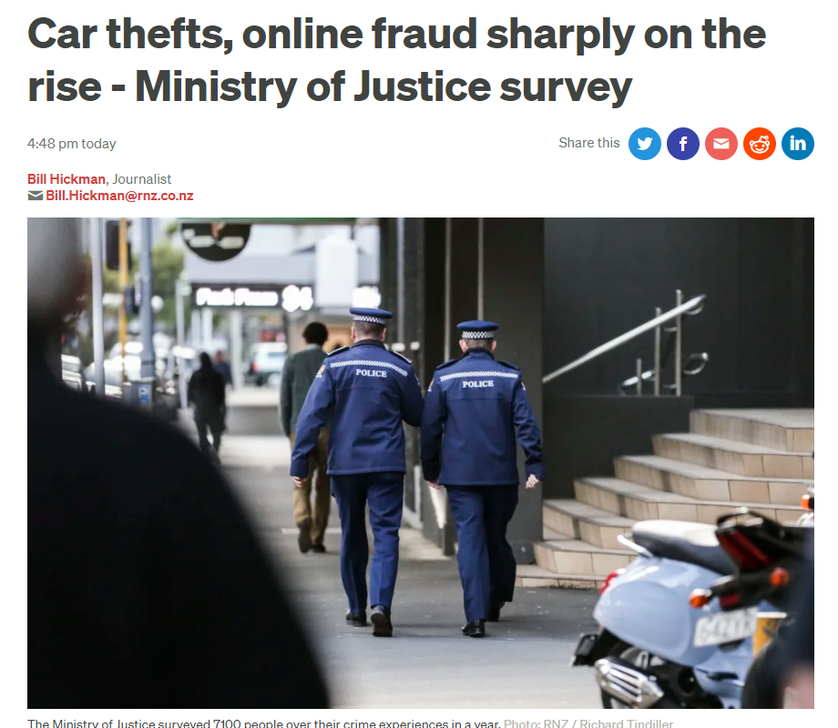新西兰车辆盗窃案大幅增加,网络诈骗案的受害人数也在不断增加。(图/RNZ网站截图)