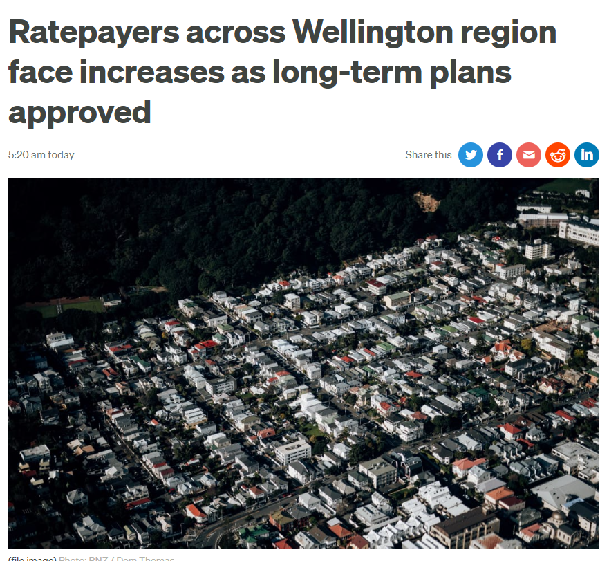 惠灵顿地区各议会近日签署了为期10年的长期计划,纳税人面临税率上涨。(图/RNZ网站截图)
