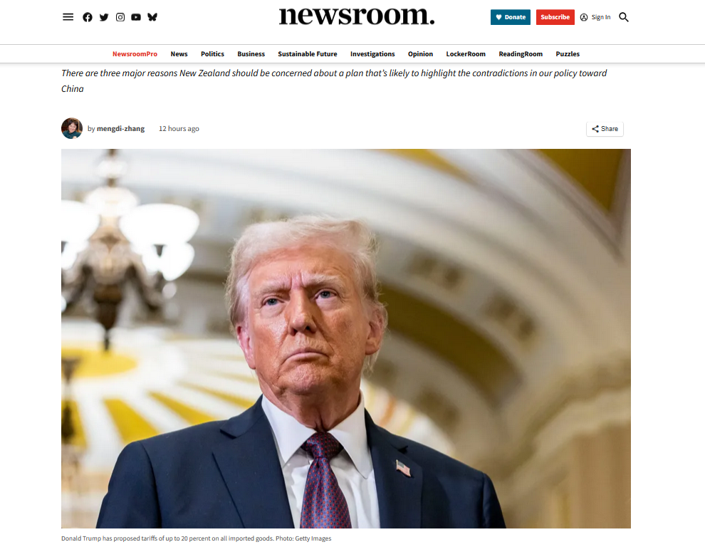 特朗普再入主白宫或让中国“转向新西兰”。(图/Newsroom网站截图)