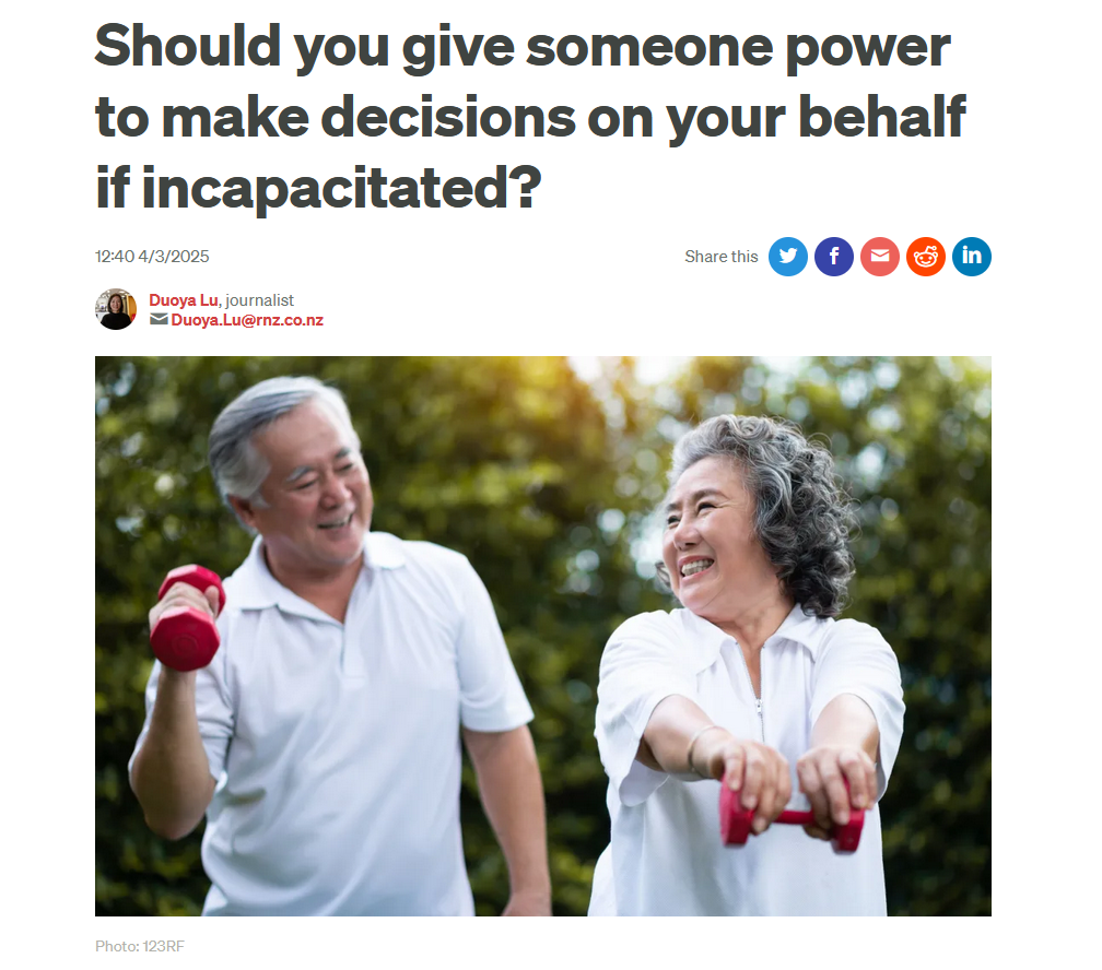 有社区服务倡导者表示, 华人社区的许多人对设立持久授权书的益处缺乏了解 。 (图/RNZ网站截图)