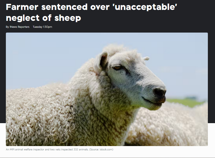 1News8日报道,这名64岁的农民坎宁安(Noel Thomas Cunningham),在承认了三项违反《动物福利法》的指控后,于7日在北帕默斯顿地方法院被判刑。