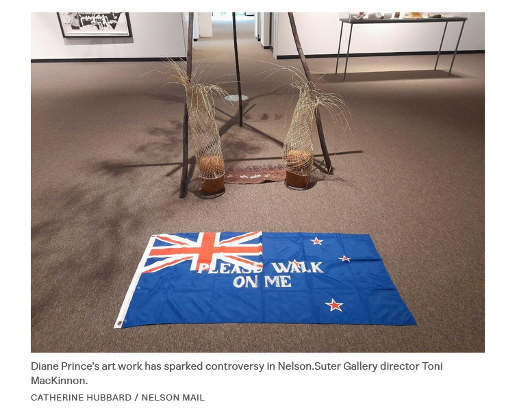 据悉,这件引发争议的作品名为《标记未来》(“Flagging the Future”,2024年)由知名毛利艺术家普林斯(Diane Prince)创作,其30年前首次在奥克兰美术馆的群展中展出时,就曾因引发公众强烈抗议而被撤展。