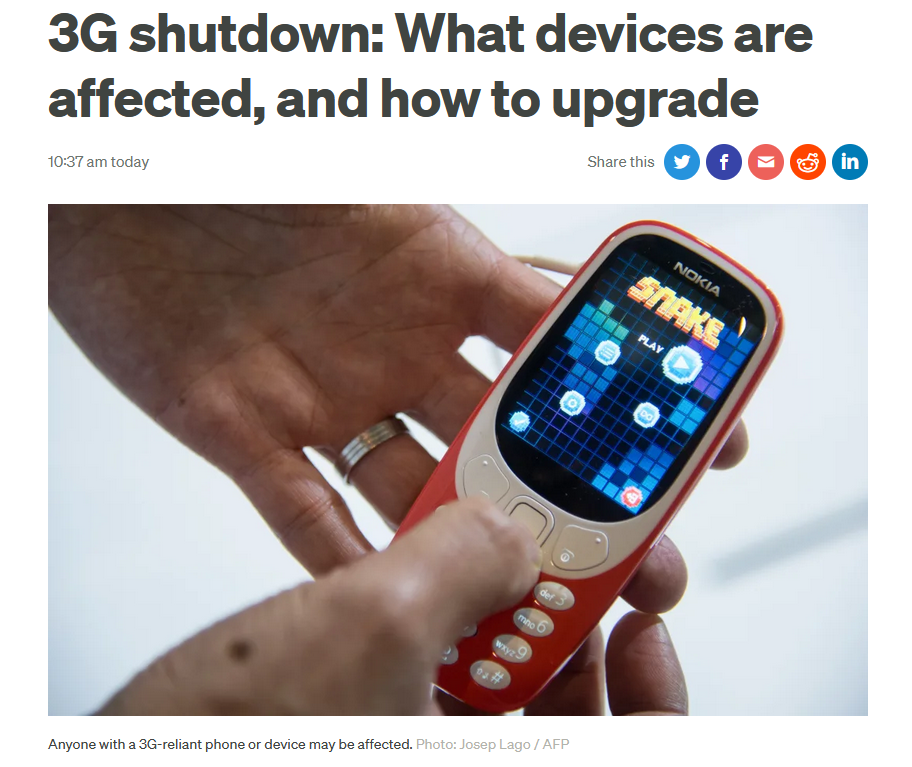 然而,任何依赖3G的手机或设备可能会受到影响,包括平板电脑、医疗警报器、安全警报器、商业设备、车辆追踪器及其他联网设备。