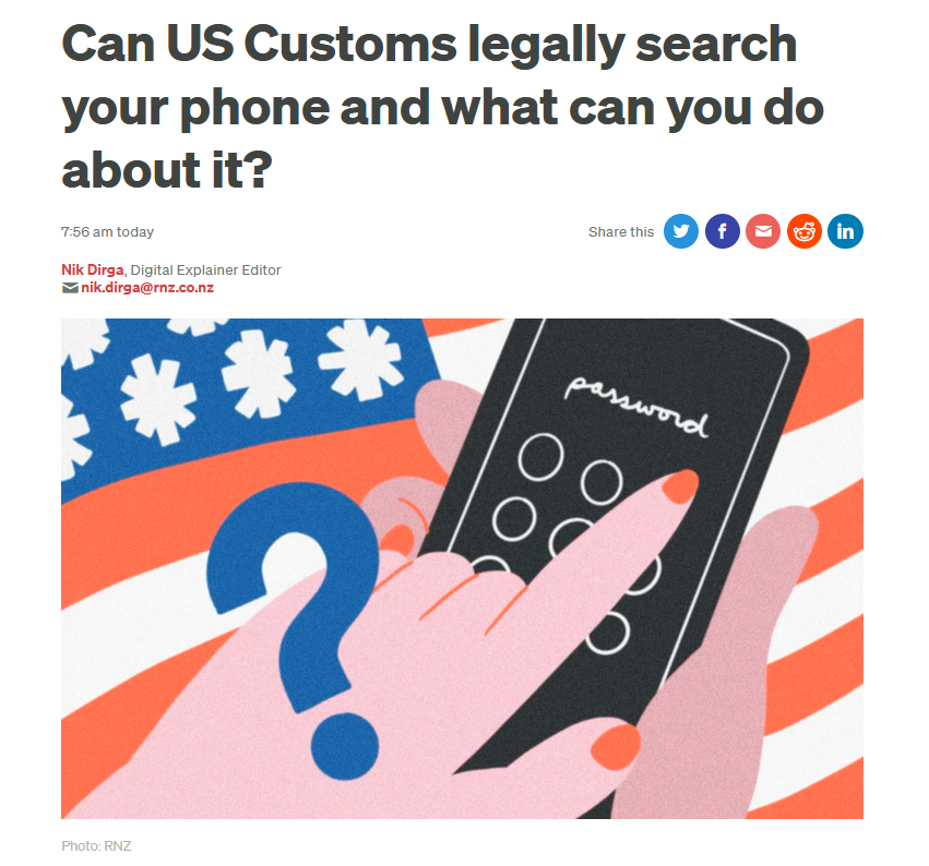 美国海关有权检查入境游客的手机。(图/RNZ网站截图)