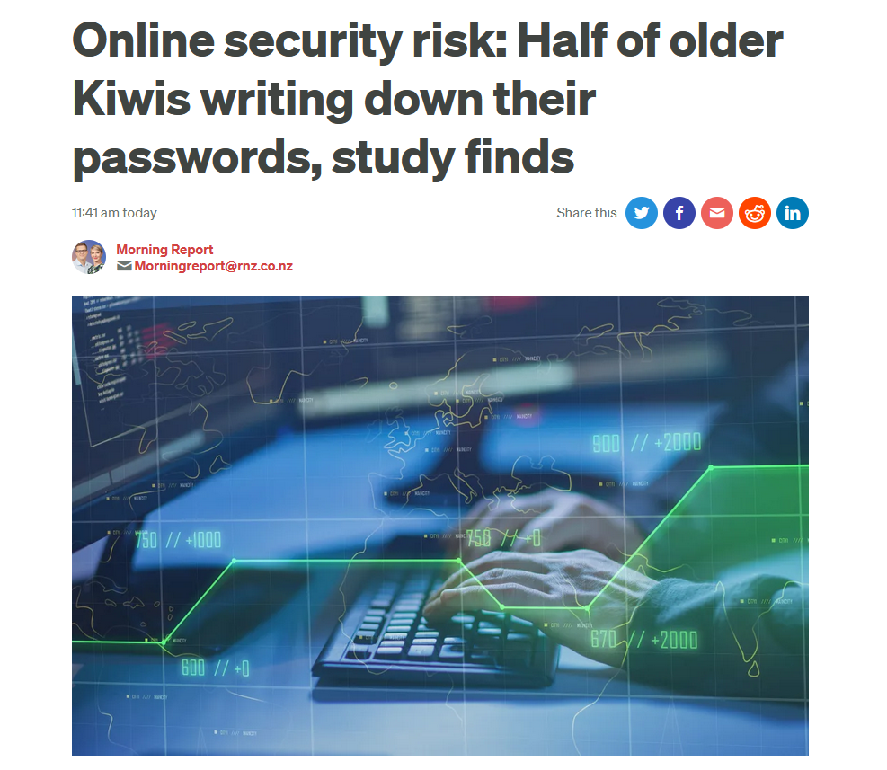 研究结果显示,一半的新西兰老年人仍习惯将各类账号密码写在纸上,存在安全隐患。(图/RNZ网站截图)
