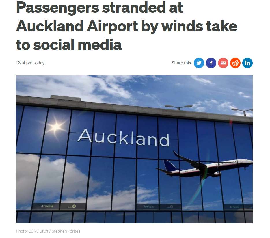 奥克兰机场因大风天气航班延误。(图/RNZ网站截图)