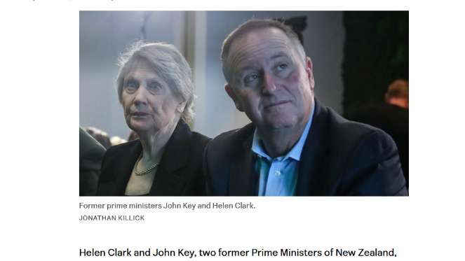 新西兰前总理约翰·基(John Key)和克拉克(Helen Clark)。(图/Stuff网站截图)