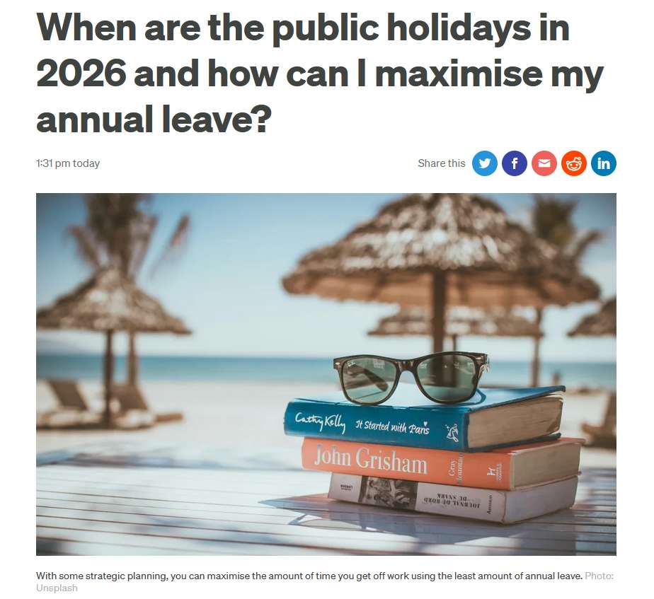 与近年来不同,2026年复活节和澳新军团日不在同一周,因此你无法结合这些法定假日享受更长假期。