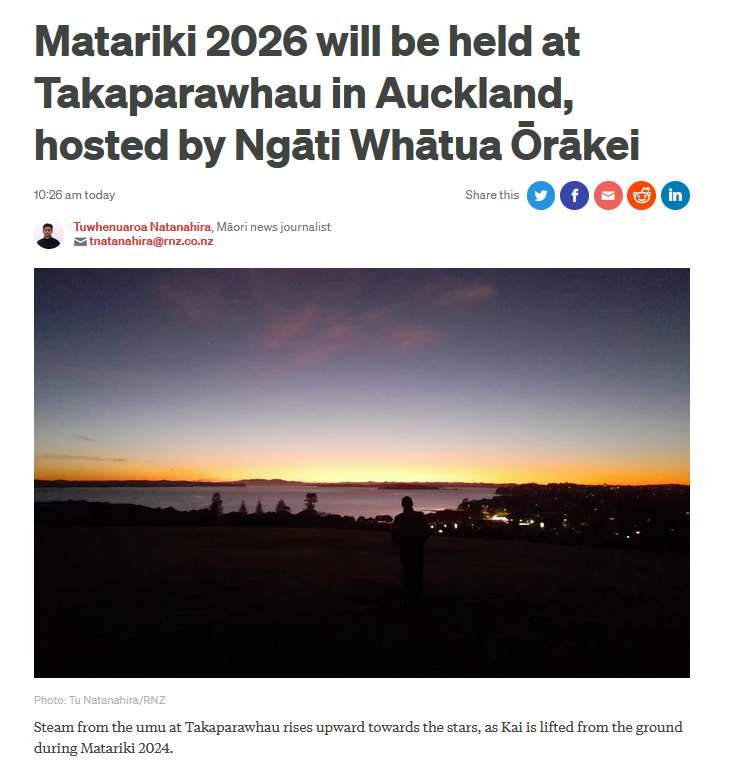 奥克兰将承办2026年全国玛塔里基(Matariki,又称毛利新年)仪式。(图/RNZ网站截图)