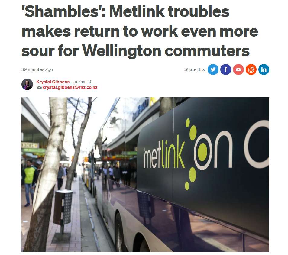 5日,通勤者在社交媒体上批评Metlink,称调配的替代公交数量严重不足,部分公交完全未按时发车,还有一些公交提前驶离站点。