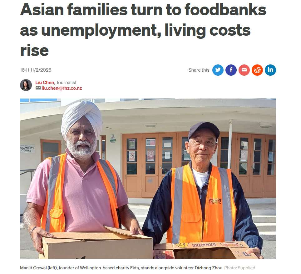 多家慈善机构近日表示,新西兰全国范围内食物银行(Foodbank)的亚裔使用者数量大幅上升。(图/RNZ网站截图)