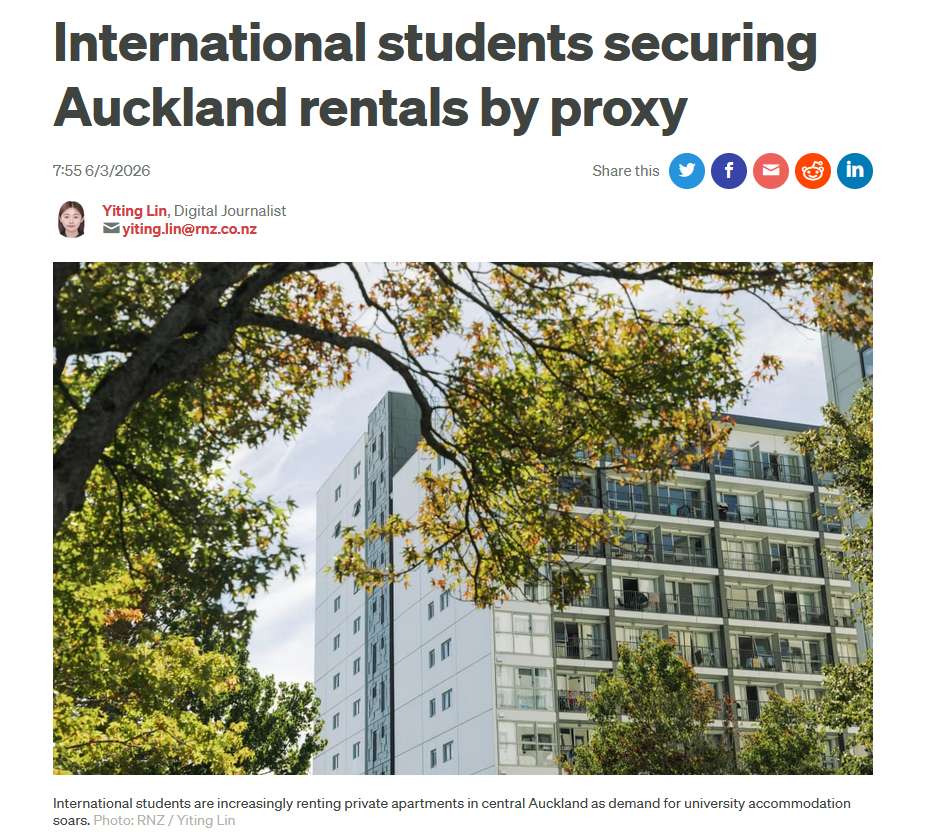 由于奥克兰的大学宿舍床位供不应求,许多即将入学的留学生不得不转向私人租房市场。(图/RNZ网站截图)