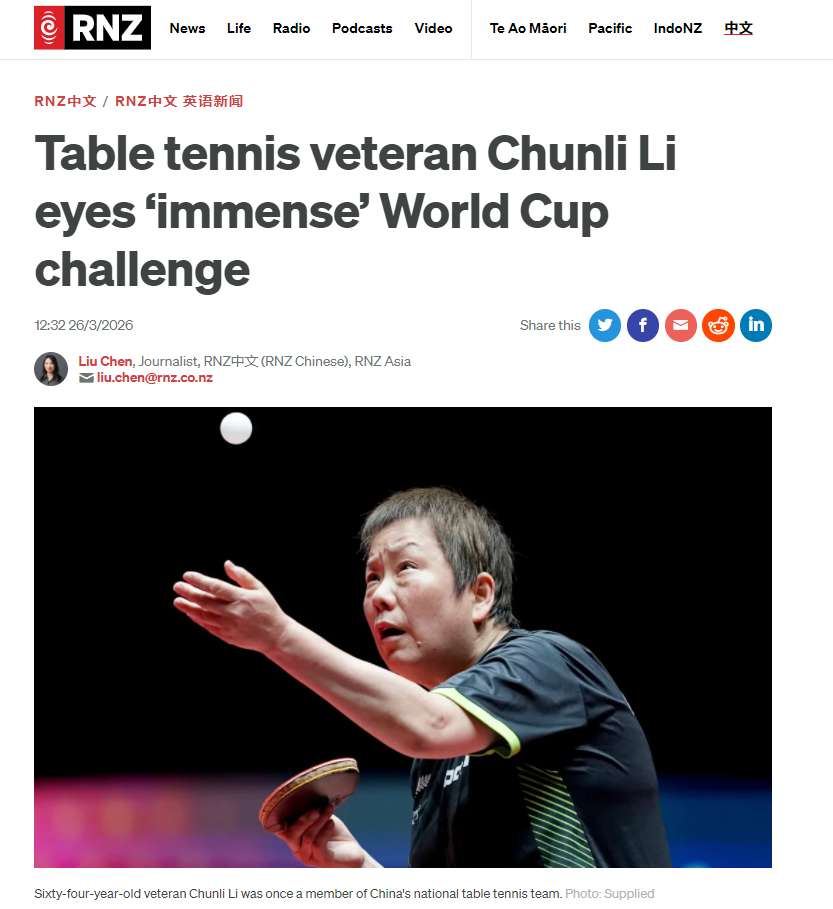 图为来自新西兰的四名乒乓球运动员近日正准备参加即将在中国澳门举行的乒乓球世界杯。(图/新西兰RNZ网站截图)