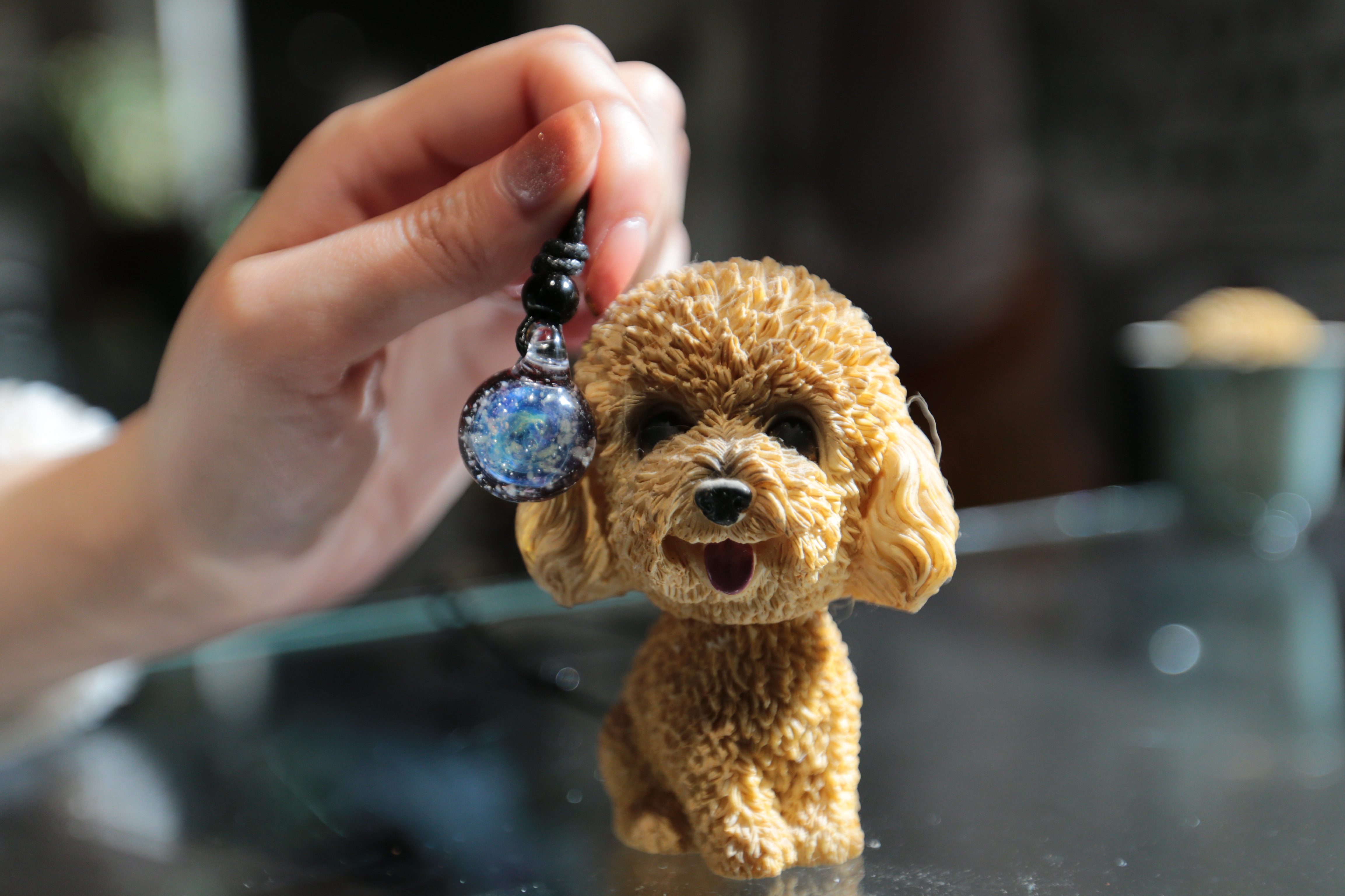 在位于西安市东郊的一家宠物生命纪念馆内,顾客可将去世宠物的骨灰通过加工,与各种小饰品融为一体。图为4月2日,纪念馆的工作人员展示由宠物骨灰制成的饰品以及宠物饰品。(中新社)