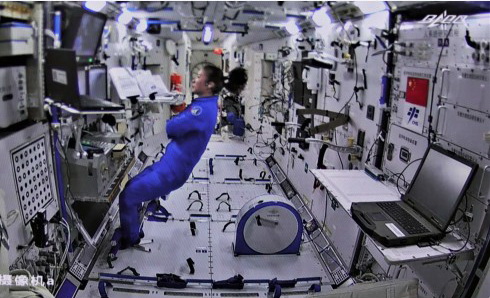 12月26日在北京航天飞行控制中心拍摄的神舟十三号航天员王亚平在核心舱内工作场景。(图/新华社)