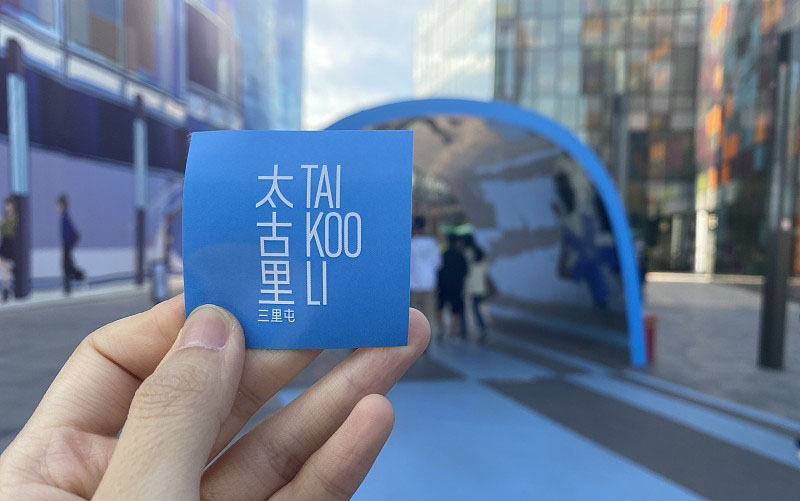 图为北京市三里屯工作人员检查游客48小时内核酸阴性证明与健康宝,并发放太古里三里屯贴纸证明。(CFP)
