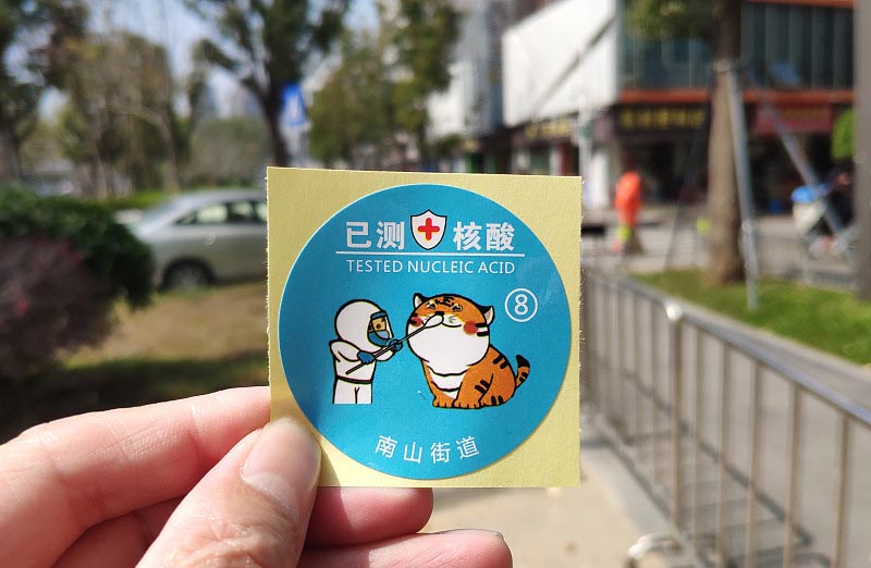 近日,由中国哈尔滨师范大学传媒学院曹文龙老师设计的核酸检测贴纸,凭借幽默的东北方言和诙谐的漫画造型,受到网友点赞和大量转发。除此之外,中国各式核酸检测贴纸最近都纷纷走红,频登热搜。中国多地在开展核酸检测筛查工作中,为完成核酸采样的市民发放各式各样的完成标识贴纸,作为核酸采样凭证,颇受市民的欢迎。 让我们一起来看看“中国式”核酸检测贴纸多有趣吧!