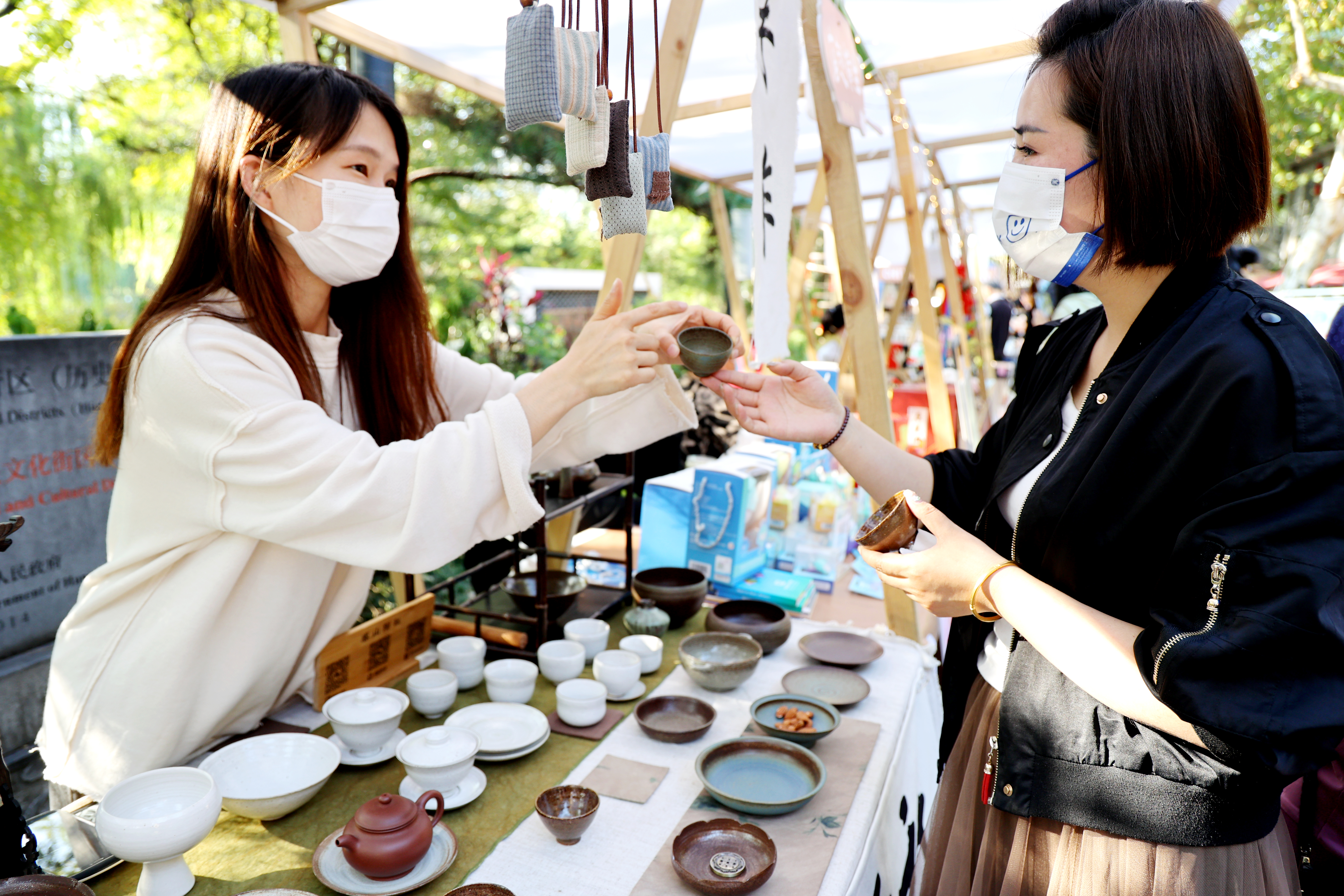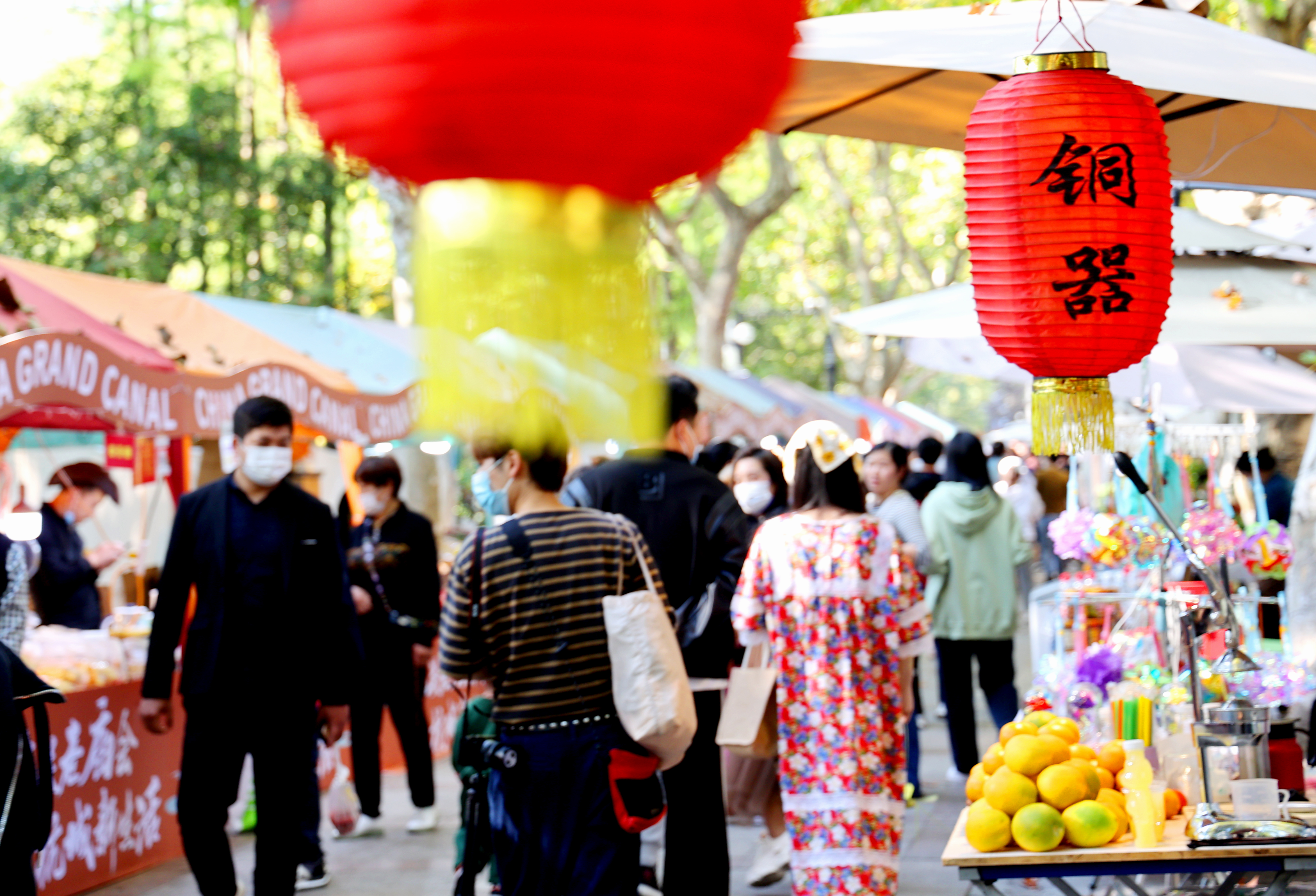 浙江杭州第九届中国大运河庙会大兜路历史文化街区“国潮文创集市”“轻食美食集市”“非遗集市”等热闹非凡,吸引了众多市民游客前来参加。(中新网)