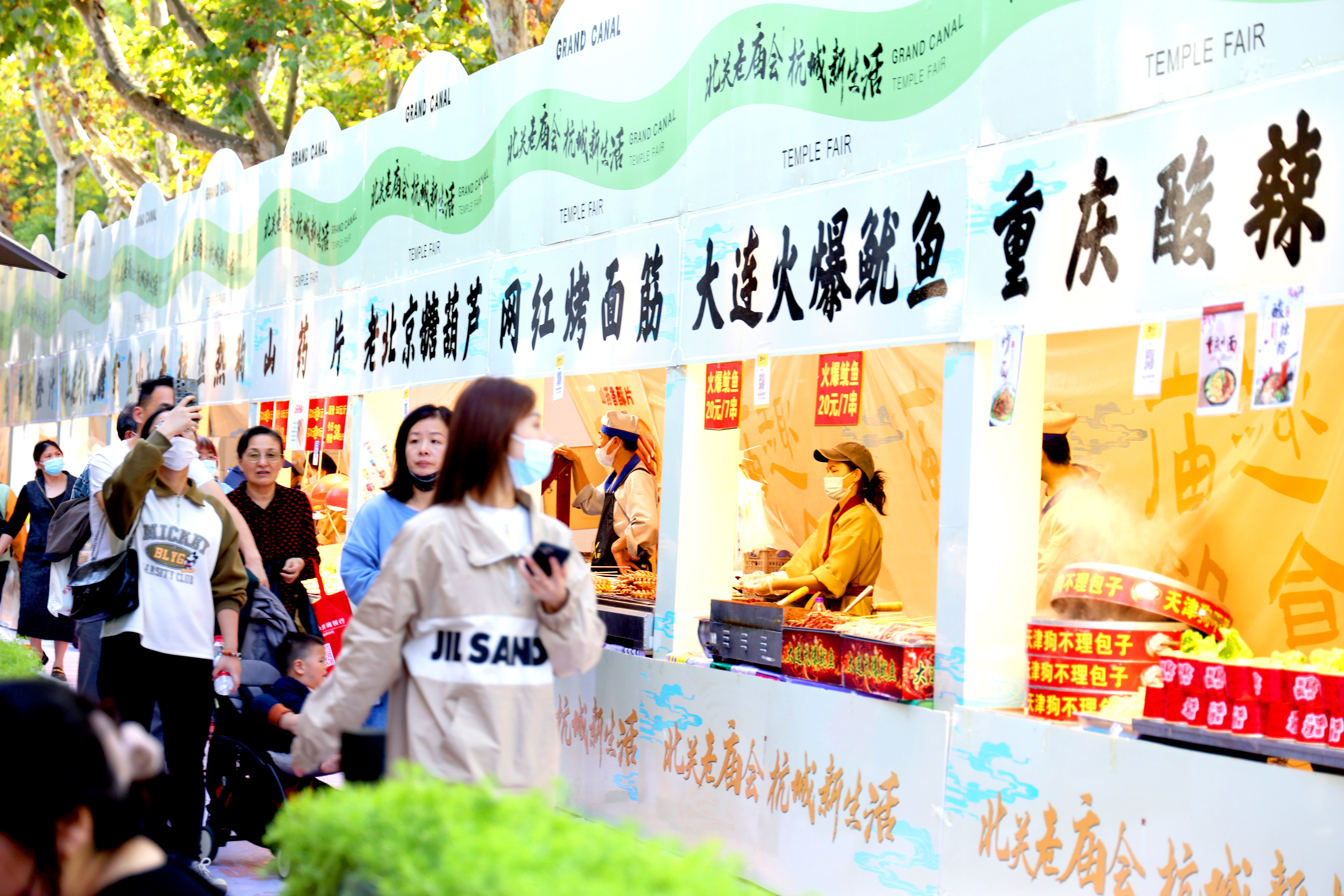 11月10日,浙江杭州第九届中国大运河庙会大兜路历史文化街区内,“国潮文创集市”“轻食美食集市”“非遗集市”热闹非凡,吸引了众多市民游客前来参加。