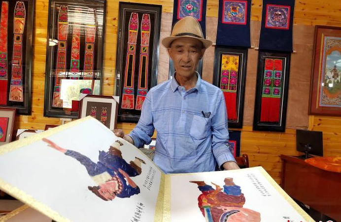 图为金文录展示早年制作的水浒人物“影人”。(图/中新网)