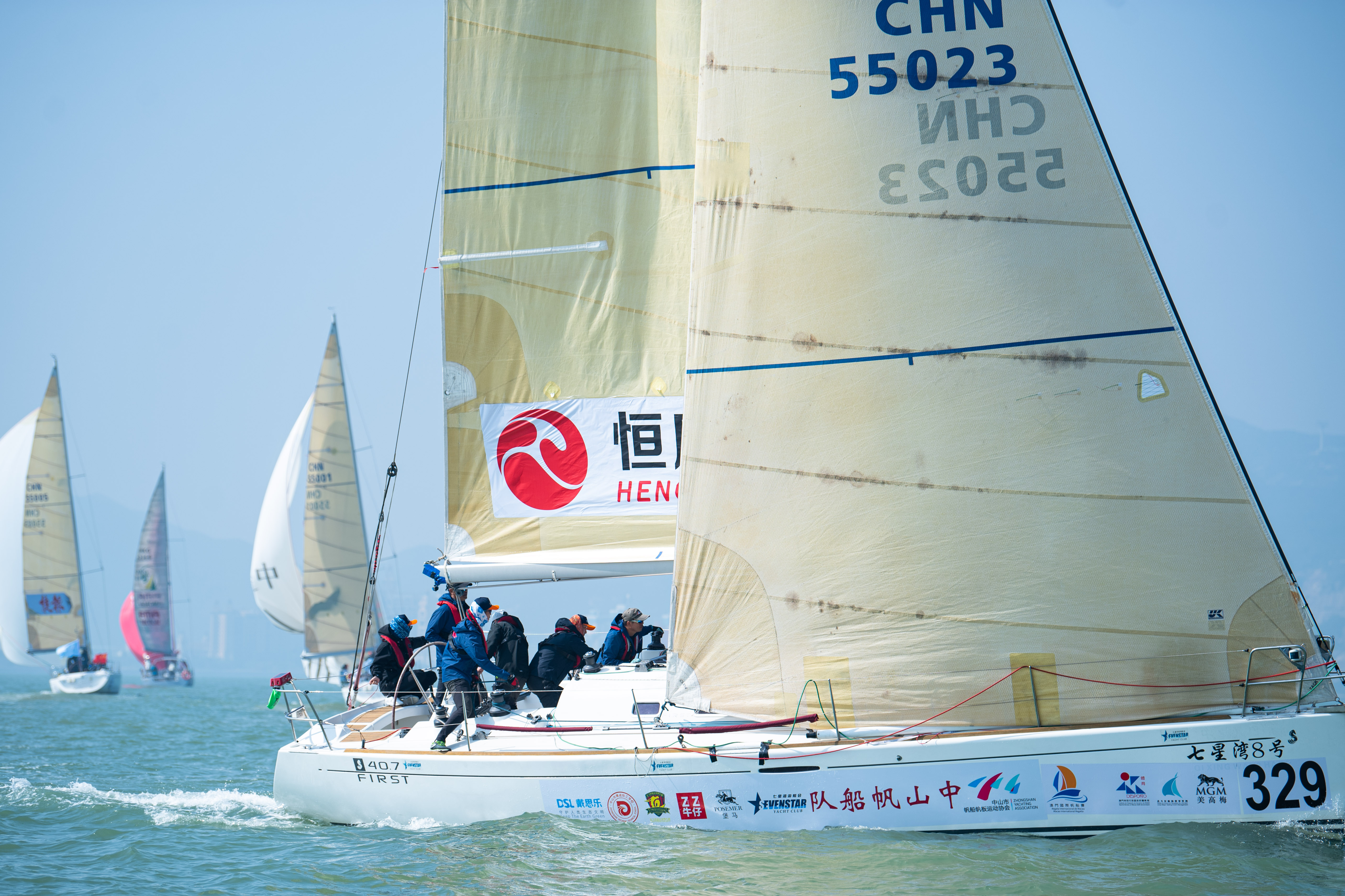 中山帆船队在粤港澳大湾区杯帆船赛IRC组比赛中。(新华社)