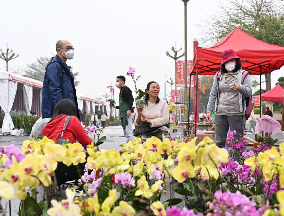 1月12日,广东佛山,第39届陈村迎春花市年味浓,吸引不少民众前来选购年宵花。1月11日至20日,第39届陈村迎春花市在陈村花卉世界芳华大道开展,该花市设置“十里花街”,重现佛山最大花市,其中包含年桔塔、阳台花园等景观。“十里花街”还有方便游客“行花街、赏花景、品陈村”的全体系花街路线,并设有一站式购物、打卡等多种年轻化项目。图为民众在第39届陈村迎春花市选购年宵花。(中新社)