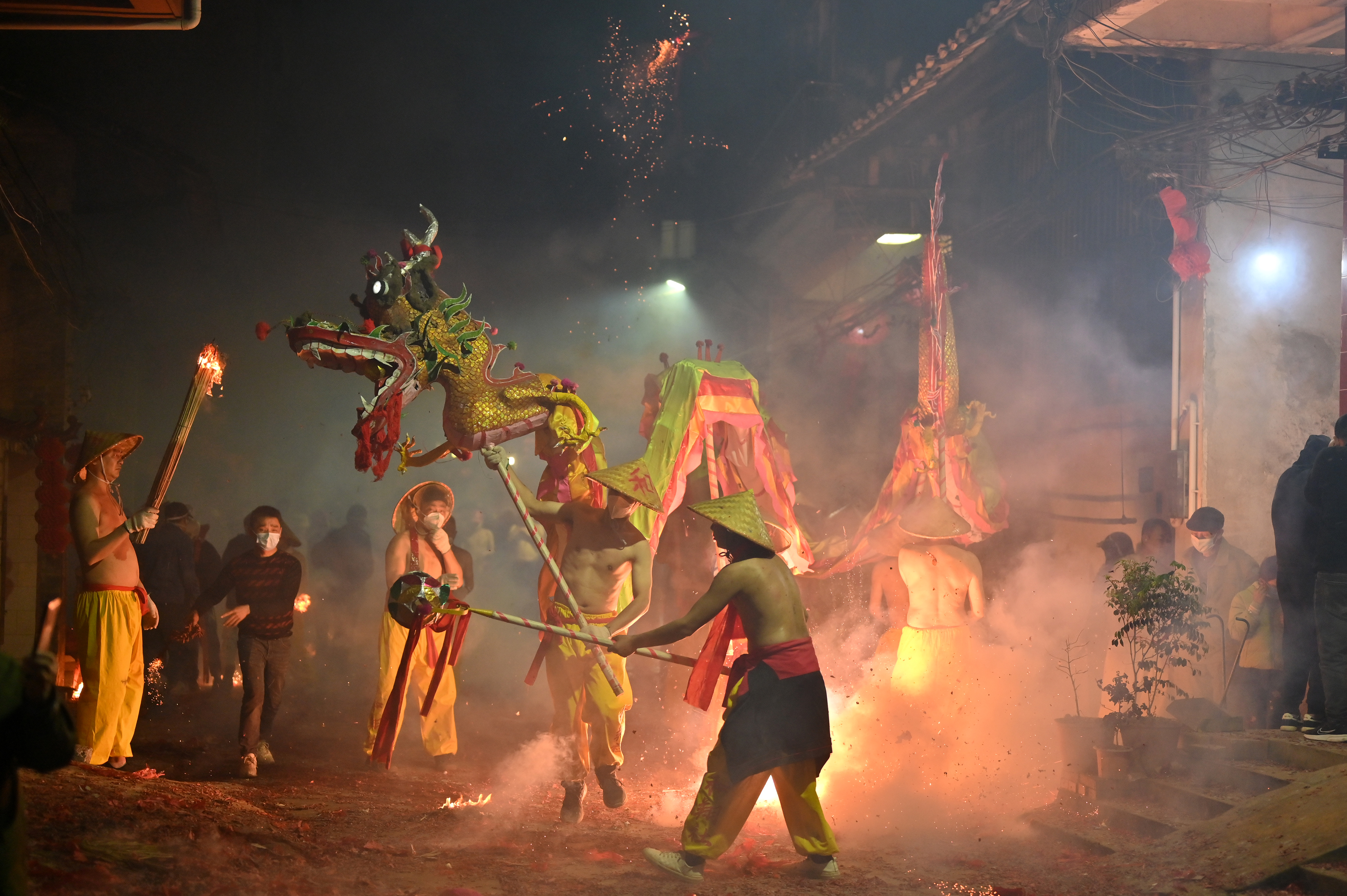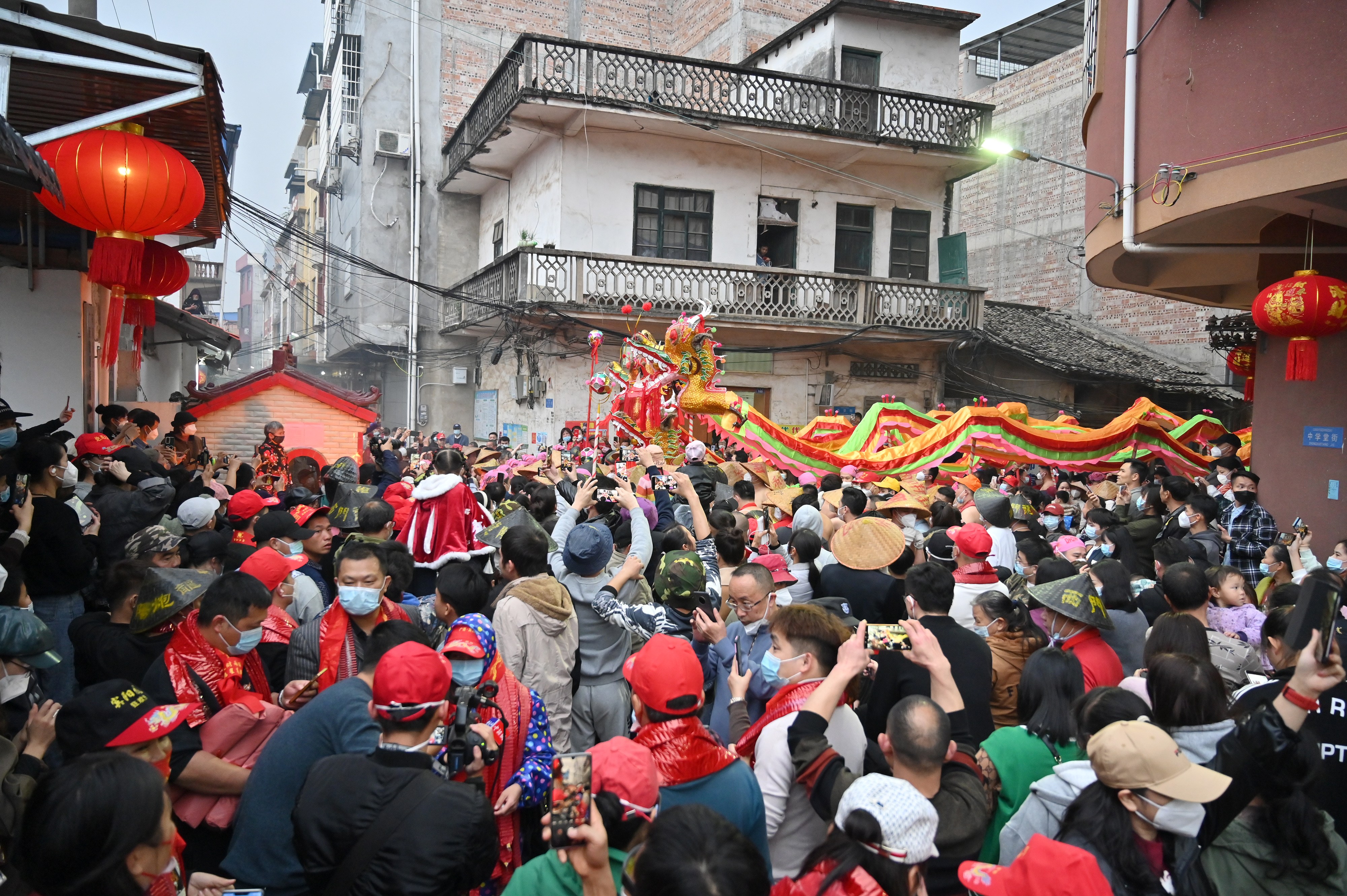 2月2日,时隔三年的中国广西宾阳民间舞炮龙活动再次举行,民众们穿龙肚、炸龙身,感受炮龙文化。当地舞炮龙习俗至今已有上千年的历史,被誉为“东方狂欢节”,是一项融合汉、壮民族文化特色的综合性民间节庆活动。每逢农历正月十一,宾阳县炮竹齐鸣,几十万游客炸龙祈福,蔚为壮观。(中新社)