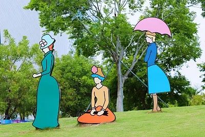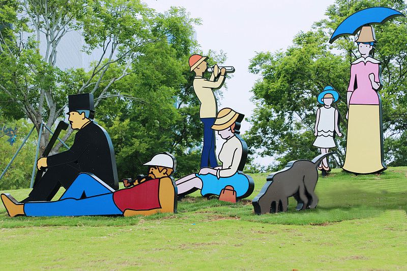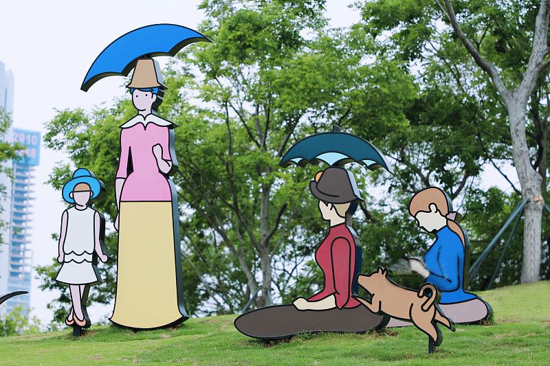 漫画人物“走进”深圳公园 草坪上晒太阳散步栩栩如生