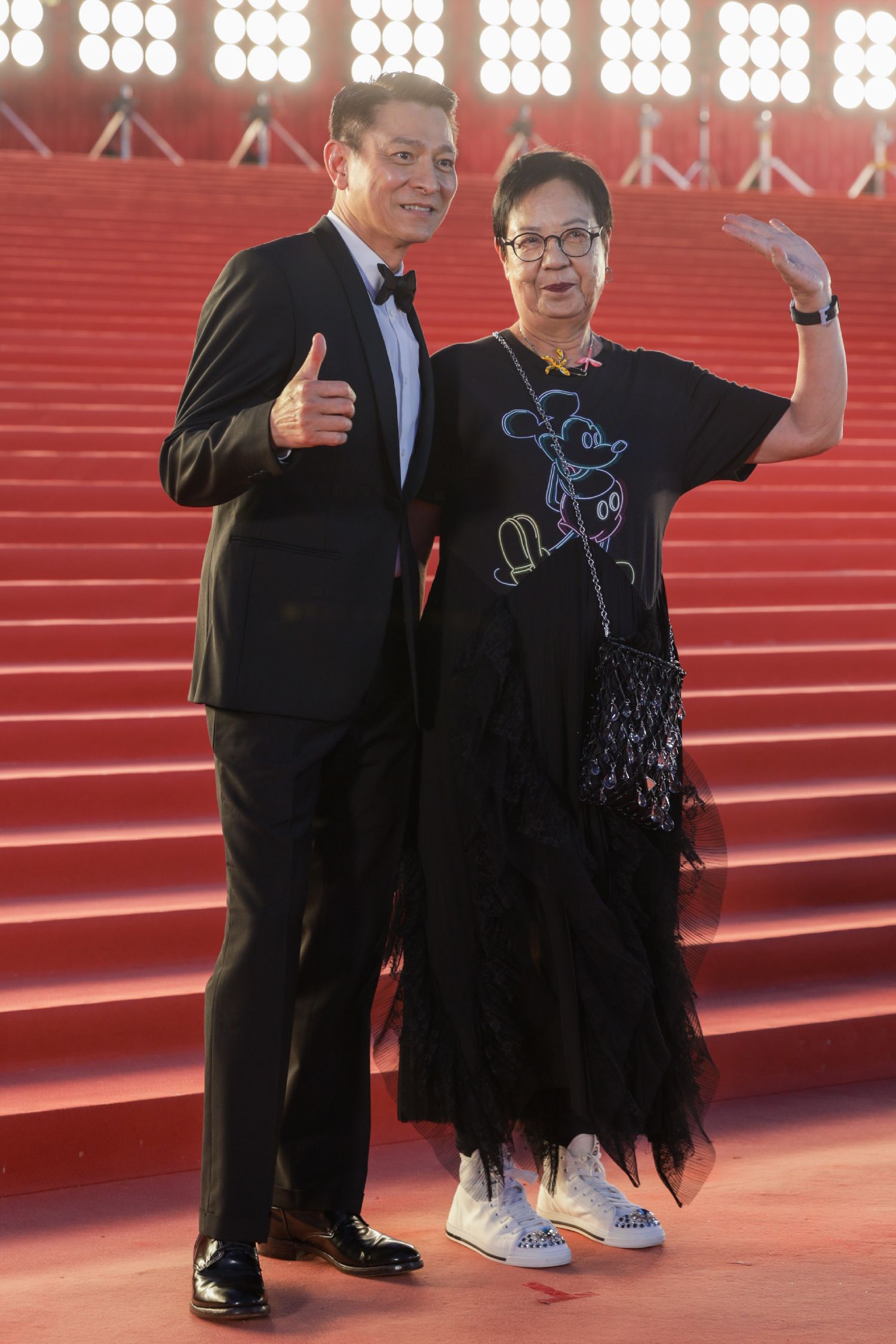 刘德华(左)和许鞍华(右)走过红地毯。(中新社)