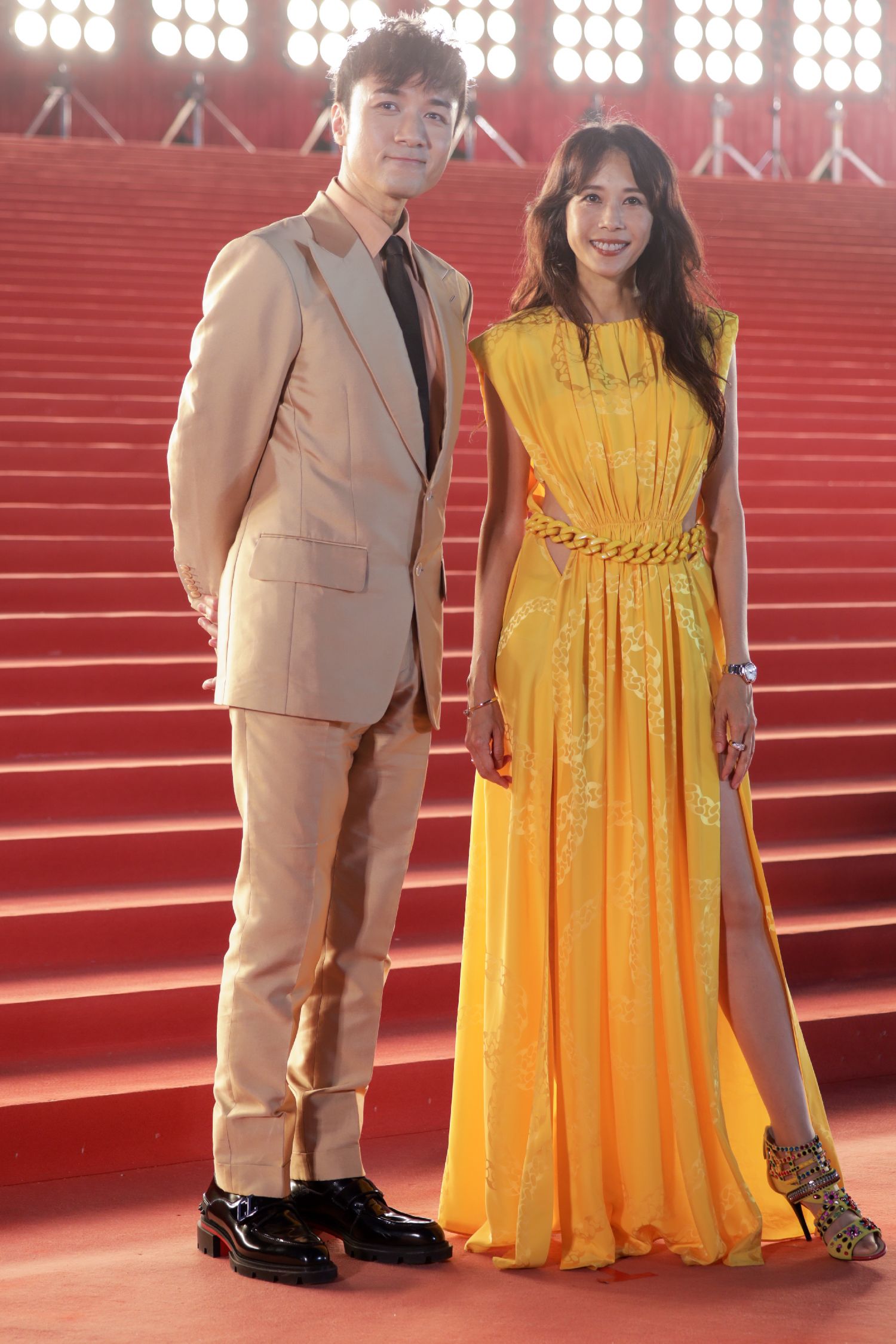 古巨基(左)、莫文蔚(右)走过红地毯。(中新社)