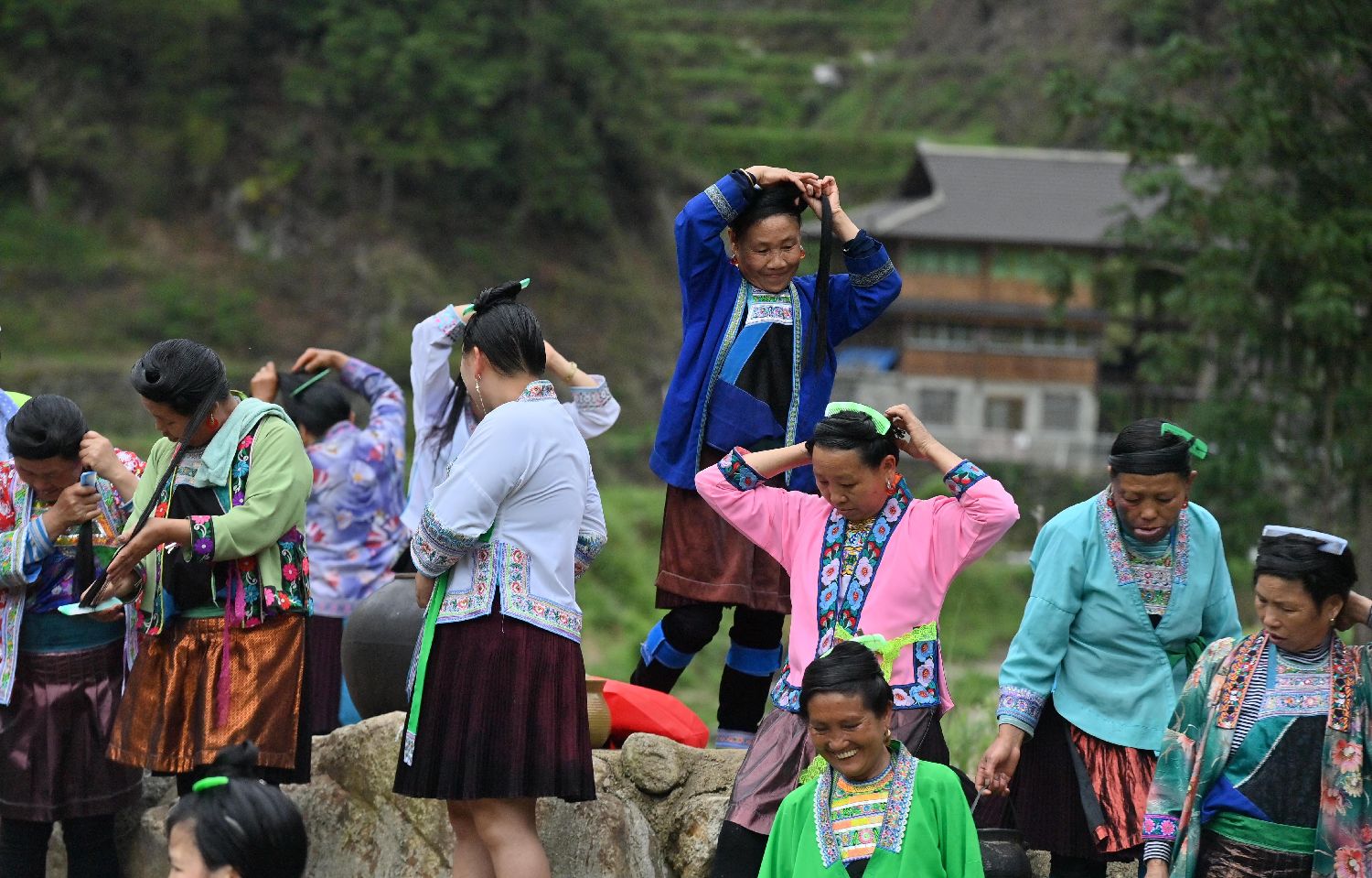 4月19日,中国广西柳州市融水苗族自治县在该县杆洞乡党鸠村乌英苗寨开展第二届淘米水开坛洗发文化节活动,苗族妇女们开展长发梳妆、洗发护发等活动,展示当地少数民族用淘米水洗头的传统养发文化。乌英苗寨地处大苗山深处,当地妇女有用淘米水洗头的传统。她们将淘米水收集到陶罐中,经火塘烘烤加热发酵后,再用来洗头发,以养护长发保持乌黑亮丽。