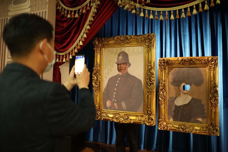 观众扮演福尔摩斯故事中的“角色”并打卡留念。(北京新京报网)