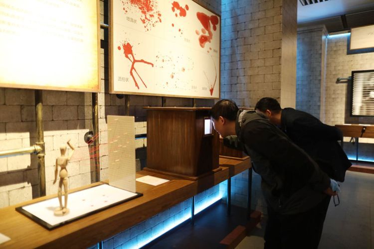 展厅设置了12个互动装置,观众可现场体验“破案”。(北京新京报网)