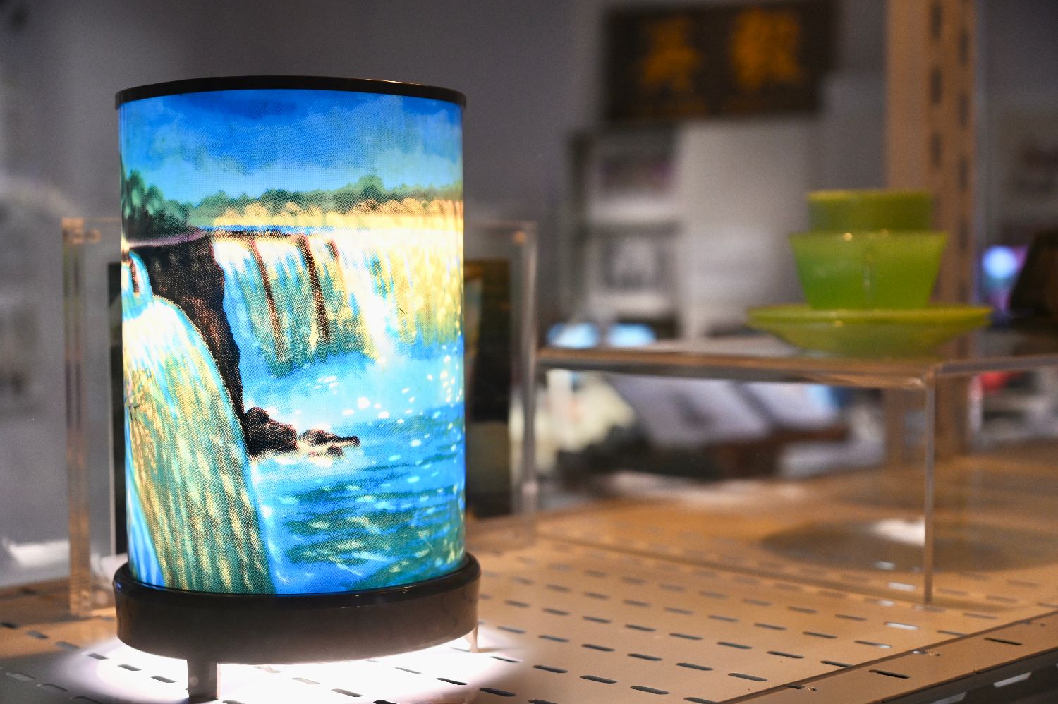 张国荣及梁朝伟饰演的经典电影《春光乍泄》中贯穿整部电影剧情的瀑布灯道具。(中新社)