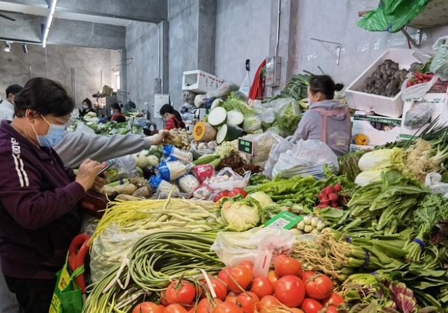 图为民众在北京一菜市场购物。(图/《北京日报》)