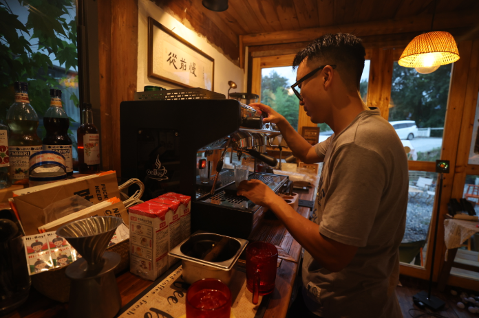 “咖啡馆有着独特的氛围,这里可以让人忘却都市中的焦虑和繁杂。”张紫电坦言,自己不是专业的咖啡师,只是想来山里做自己喜欢的事情,沉淀自己的同时也给他人提供一个放松休息的空间。