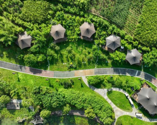 航拍云舍村打卡景观和游乐设施。(图/中新网)