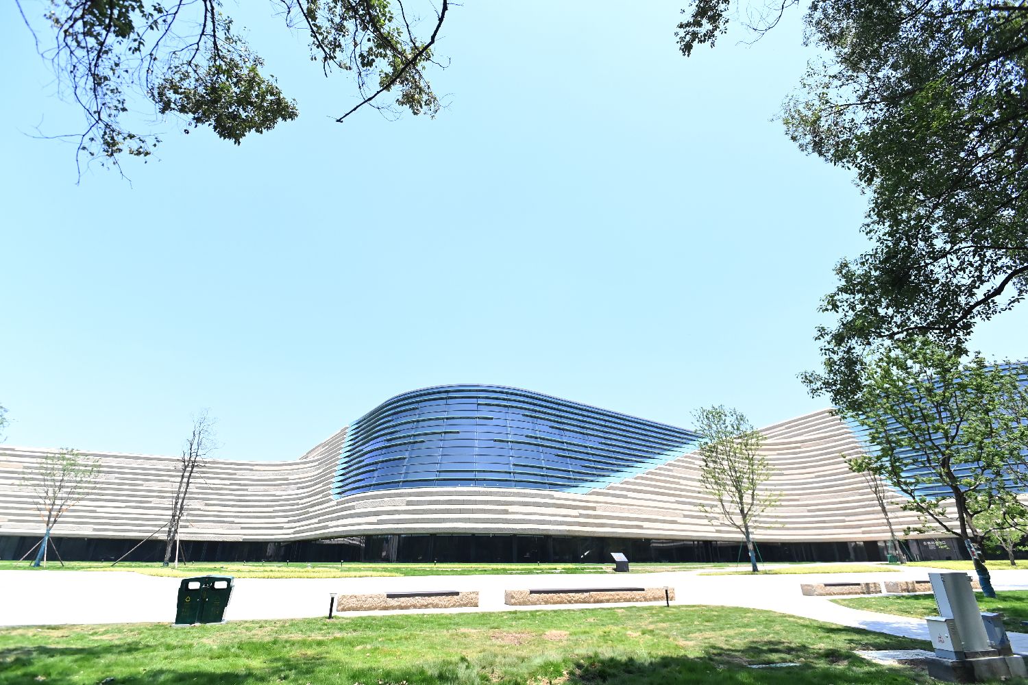 7月27日,三星堆博物馆新馆在四川省广汉市试运行,最新出土文物、最新研究成果、最新科技手段纷纷亮相。图为7月17日拍摄的三星堆博物馆新馆外观。(中新社)
