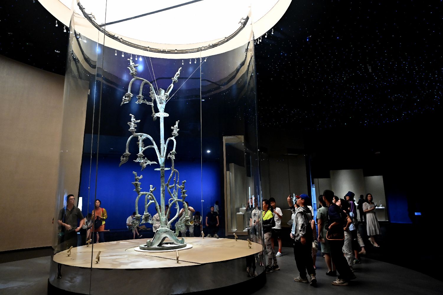 7月27日,三星堆博物馆新馆展出的“Ⅰ号青铜神树”。(中新社)