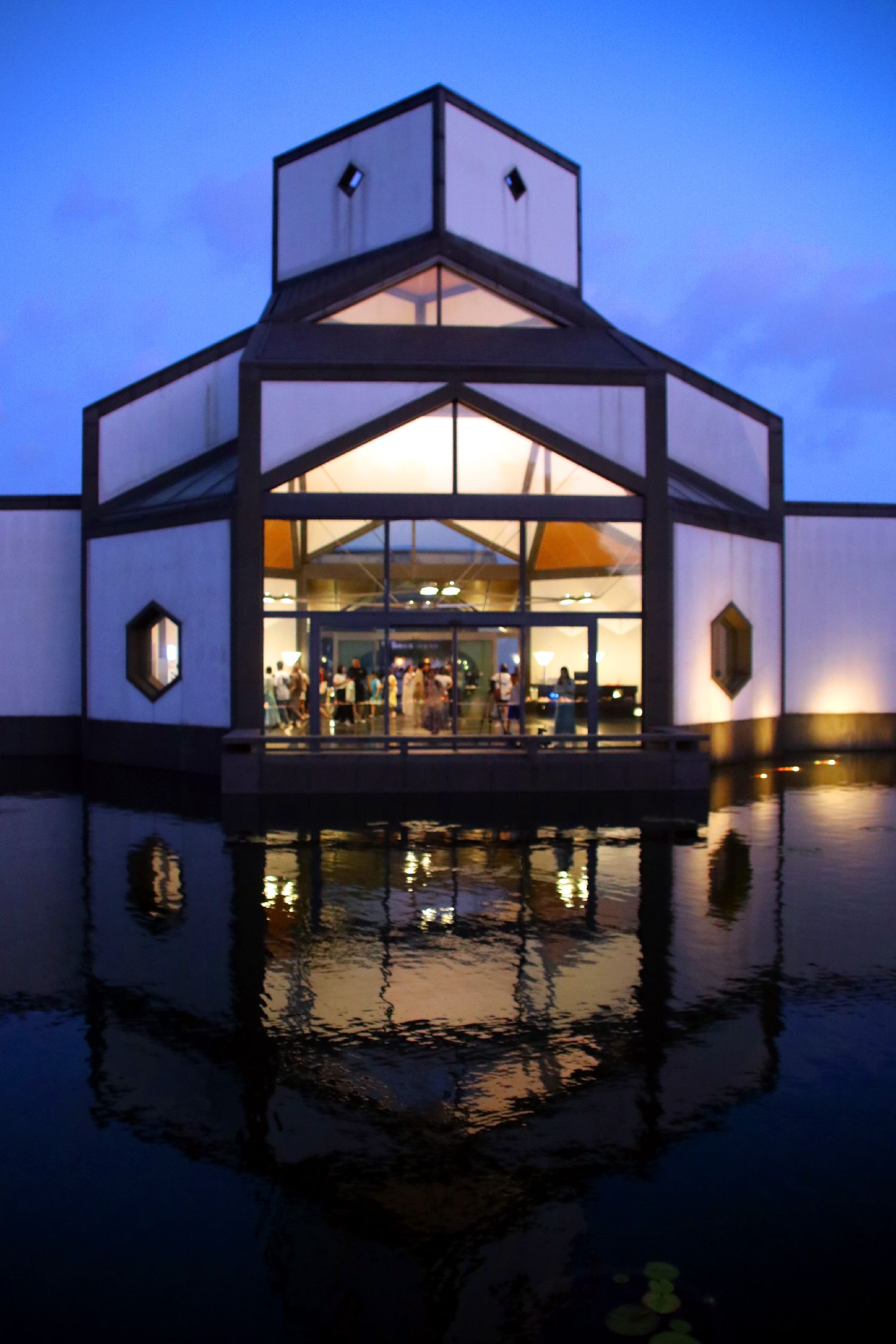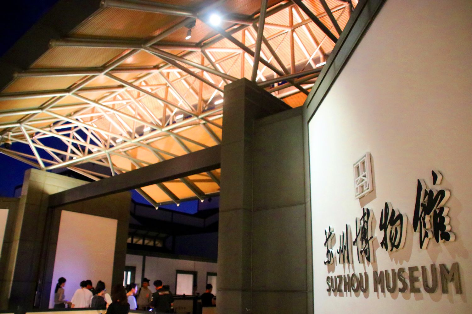 8月1日晚,游客进入江苏苏州博物馆门口。(中新网)