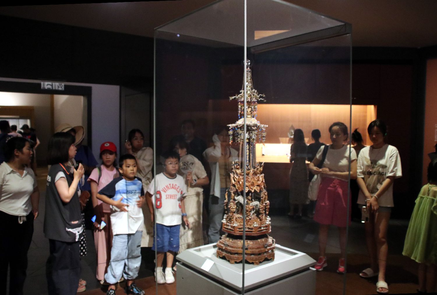 8月1日晚,游客在江苏苏州博物馆参观展品。(中新网)