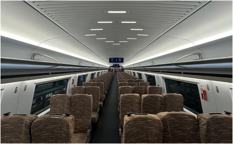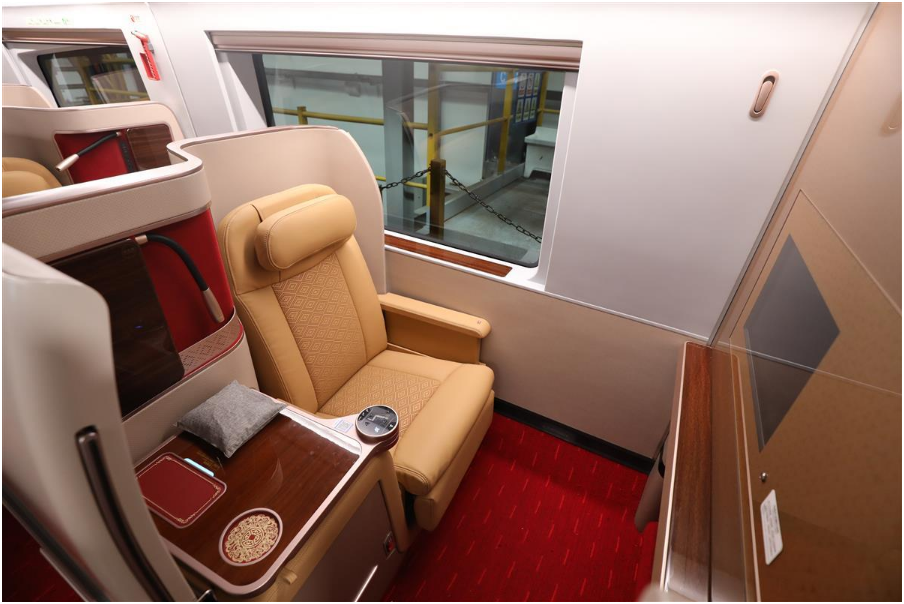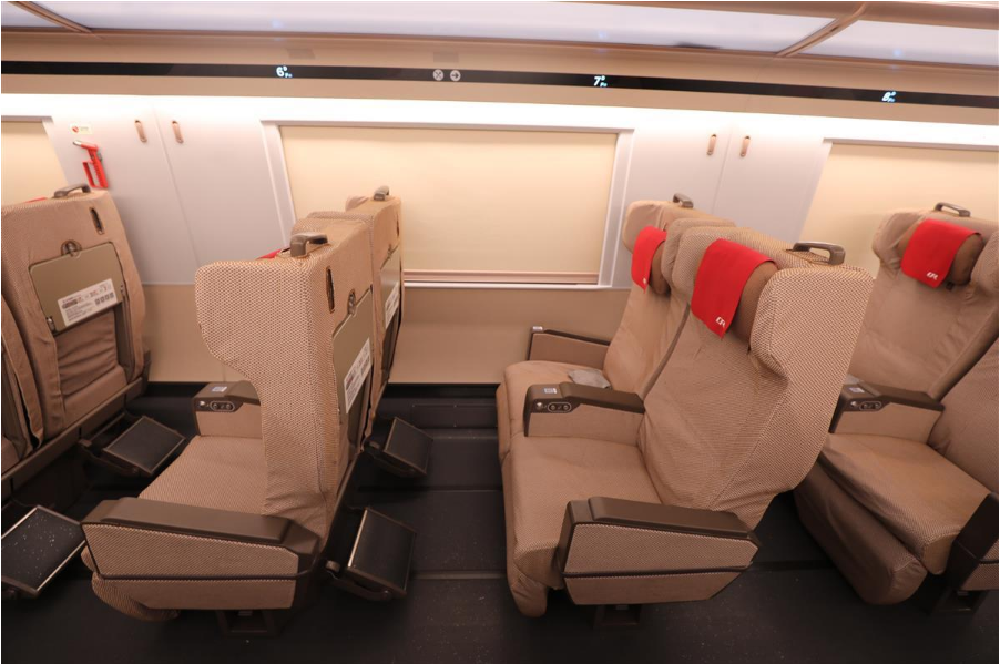 一等座和二等座也在许多细节上进行了优化,比如坐垫的支撑感更强,腰部承托的效果更明显,前排椅背上方增设USB充电口。一等座头部靠垫改为上下可移动,旅客可以根据自己的需求进行调整,新增腿部靠垫,乘坐者可以获得更好的舒适度。