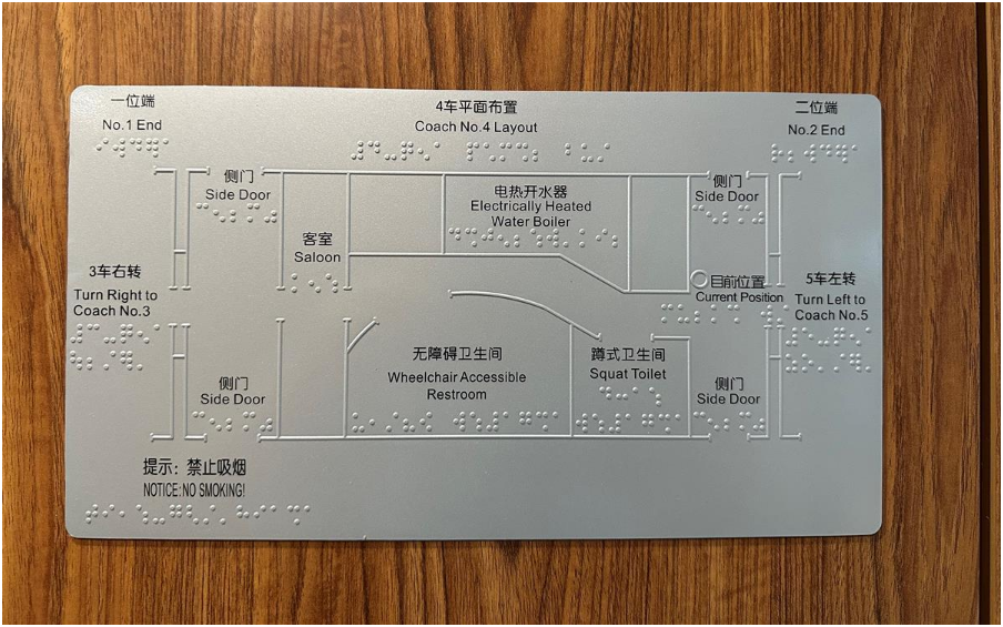 无障碍车厢随处可见盲文标识。(图/武汉极目新闻)