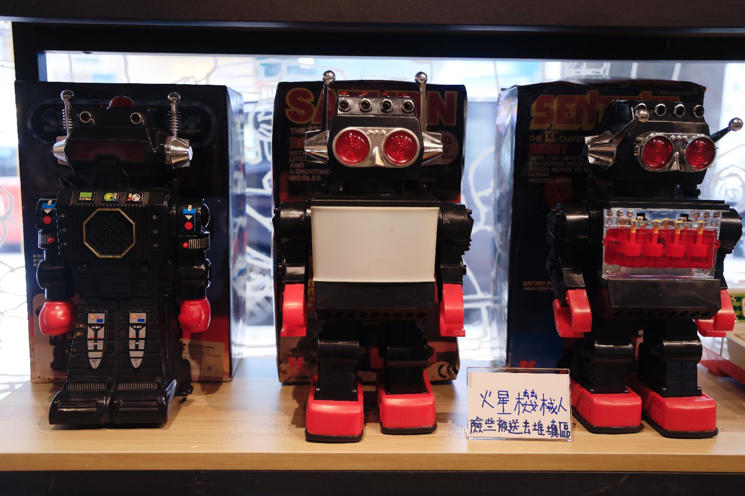 “断捨离·怀旧玩具展2.0暨升级再造玩具展”一连多日在香港旺角“上海618”举行,展览展出300多件从未展示过的玩具,包括铁皮玩具、洋娃娃、怀旧棋、机械人、模型、玩具车等。图为8月17日拍摄的火星人铁皮玩具。(香港中通社)