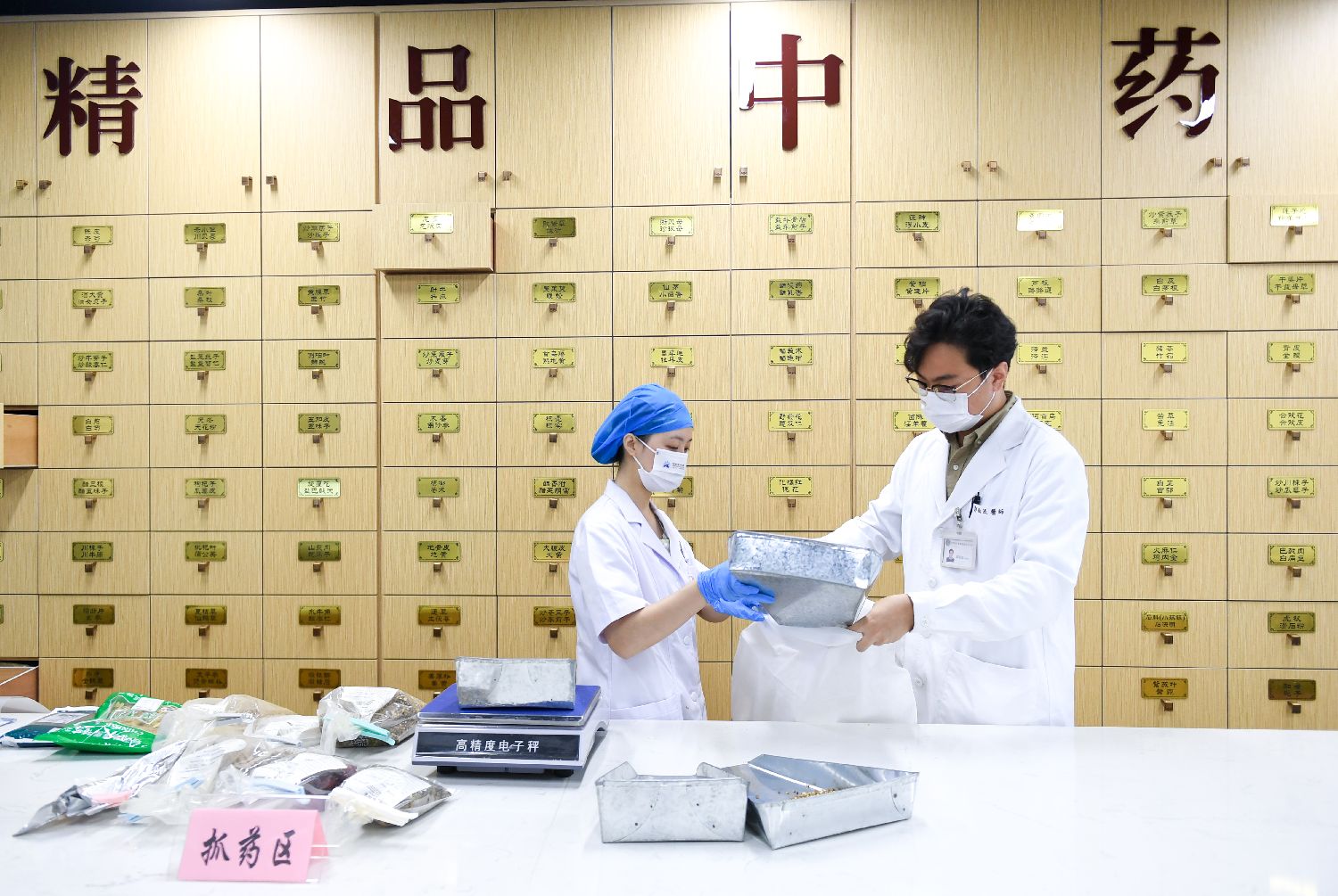 随着香港与内地交流合作不断深入,越来越多香港青年选择来到粤港澳大湾区开拓事业,来自香港的注册中医师郭钧泯便是其中一员。出于对医学及传统文化的浓厚兴趣,郭钧泯在大学时选择了中医学,在香港大学中医学硕士毕业后成为了香港一名注册中医师。图为近日郭钧泯(右)在深圳市中医药传承发展研究院的药房帮助同事抓药。(新华社)