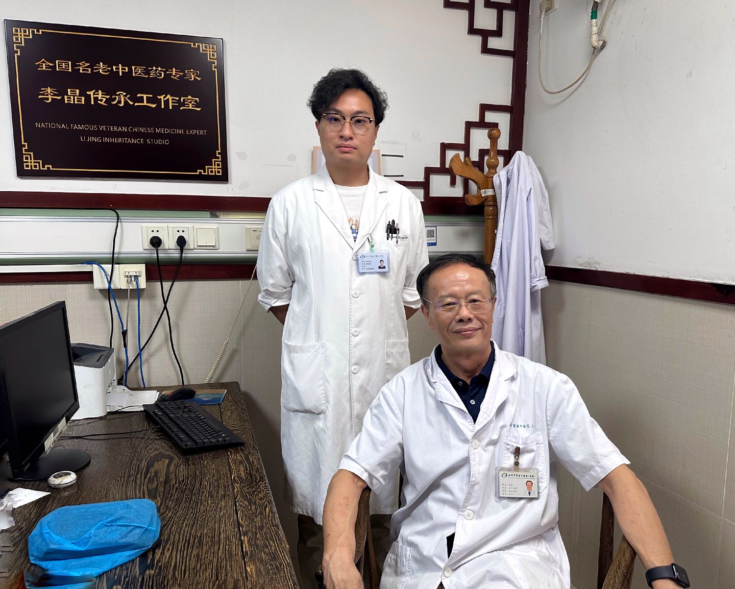 作为首批试点招录的香港注册中医师之一,郭钧泯被深圳市中医药传承发展研究院聘为中医师、研究员,负责日常临床服务以及中医药先行先试方面的行政工作。图为在深圳市宝安中医院全国名老中医药专家李晶传承工作室,郭钧泯与恩师李晶的合影。对于拜入李晶门下进修一事郭钧泯表示希望能借此探索港澳中医师师承、进修制度。(新华社)